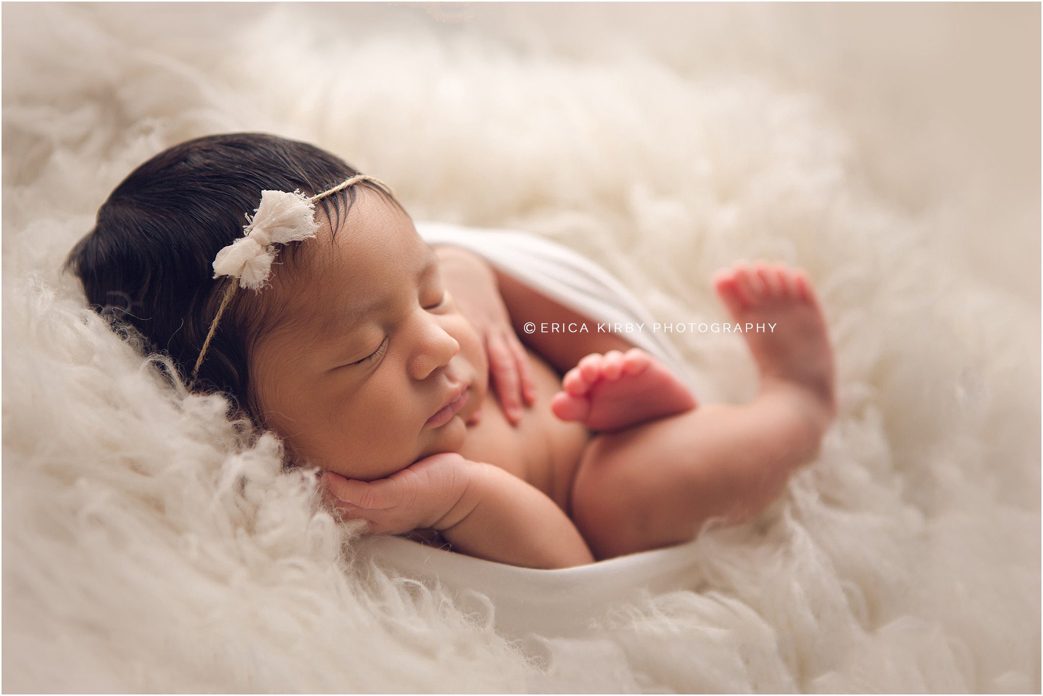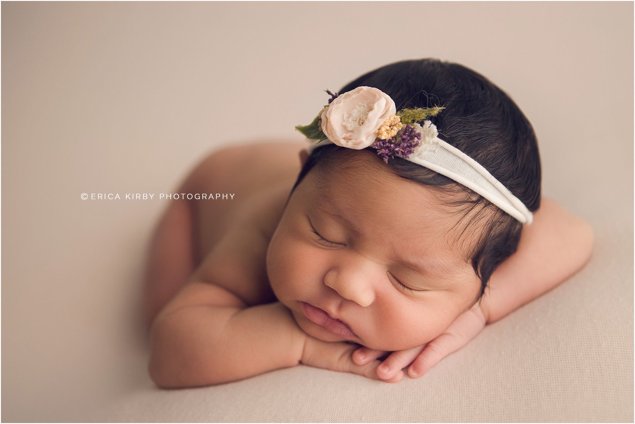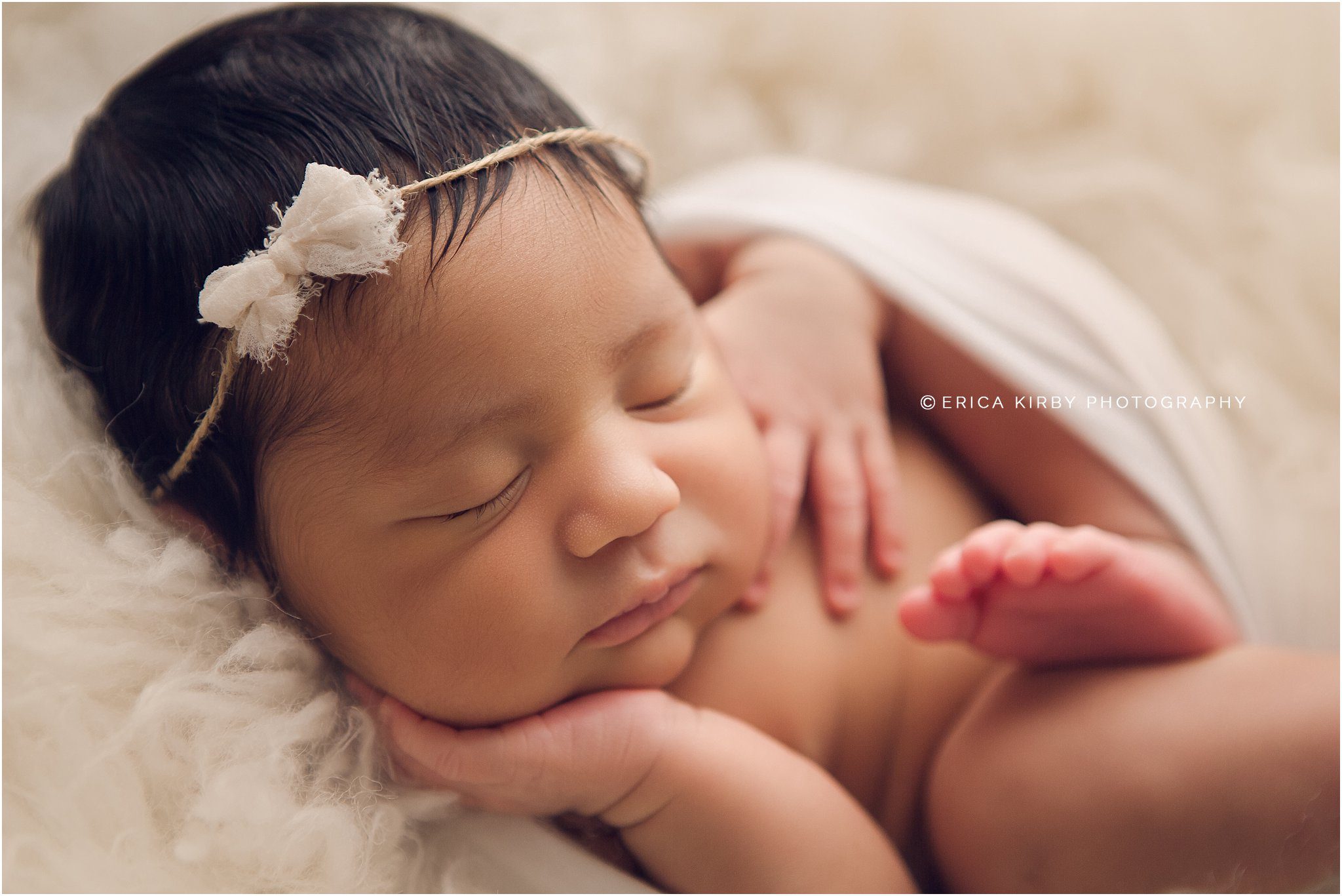 Kamryn was another one of our models from a recent 1:1 newborn posing workshop that I hosted in my Bentonville studio. She was every bit as dreamy as she looks in her gorgeous photos. So sleepy and cheeks and hair for days. Her mom was adorable, watching her sweet baby girl and gushing over how angelic she looked in all of her adorable poses and the sweet little hats and headbands we selected for her session.